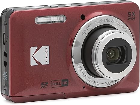 KODAK PIXPRO FZ55-RD 16MP Digital Camera 5X Optical Zoom 28mm Wide Angle 1080P Full HD Video 2.7″ LCD Vlogging Camera (Red) Packaging May Vary