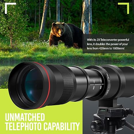 - Precision at its Best – With its 420mm-800mm focal length and 62mm filter thread, capture intricately detailed photos. The sophisticated f/8.3 aperture ensures photos are crisp and clear, highlighting your subject matter beautifully